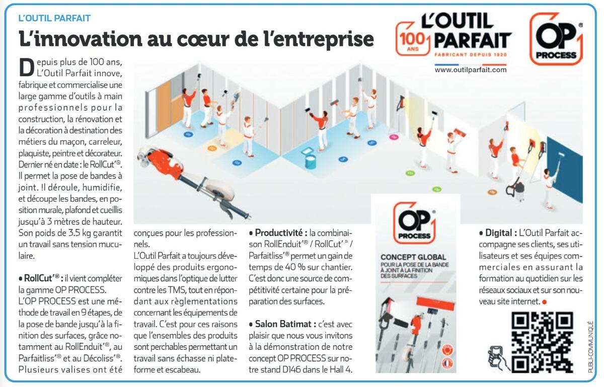 L’Outil Parfait développe des concepts pour améliorer la productivité et le confort sur les chantiers : L'OP PROCESS, concept en 9 étapes, permettant de réaliser la pose des bandes à joint jusqu'au ponçage des surfaces grâce à 5 kits !